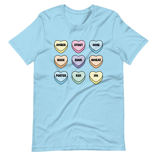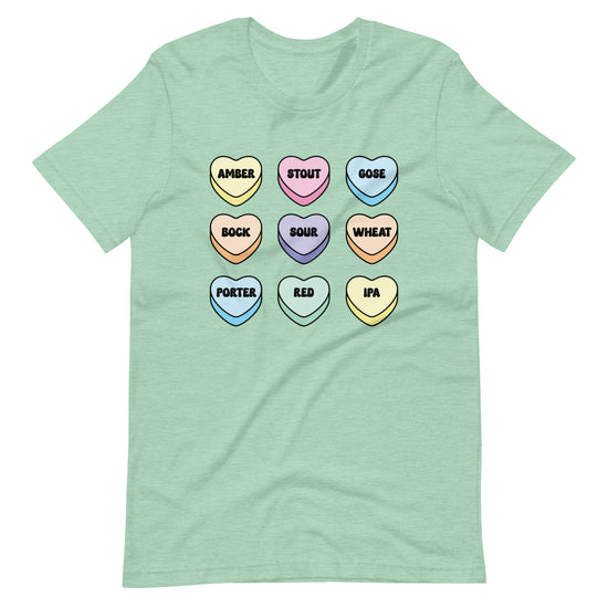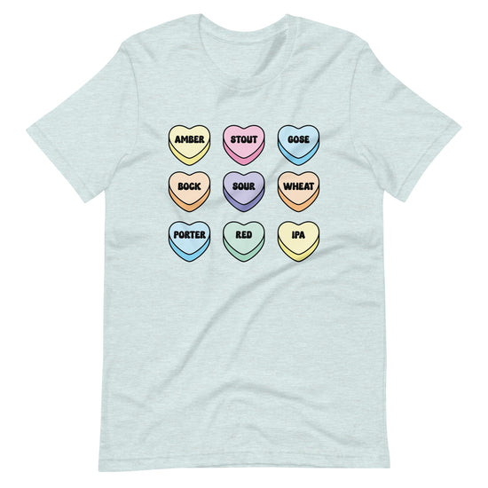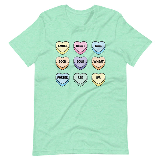 Raise a glass to the "Brewer's Heart Collection," the latest addition to the Craft Beer Girls apparel line. This design celebrates the art and science of brewing with a playful array of candy hearts, each emblazoned with the name of a beloved beer style. From the rich depths of "Stout" to the hoppy heights of "IPA," and the sour twist of "Gose," this collection is a tribute to the diverse world of craft beer.