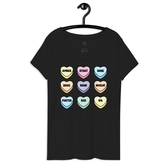 Raise a glass to the "Brewer's Heart Collection," the latest addition to the Craft Beer Girls apparel line. This design celebrates the art and science of brewing with a playful array of candy hearts, each emblazoned with the name of a beloved beer style. From the rich depths of "Stout" to the hoppy heights of "IPA," and the sour twist of "Gose," this collection is a tribute to the diverse world of craft beer.