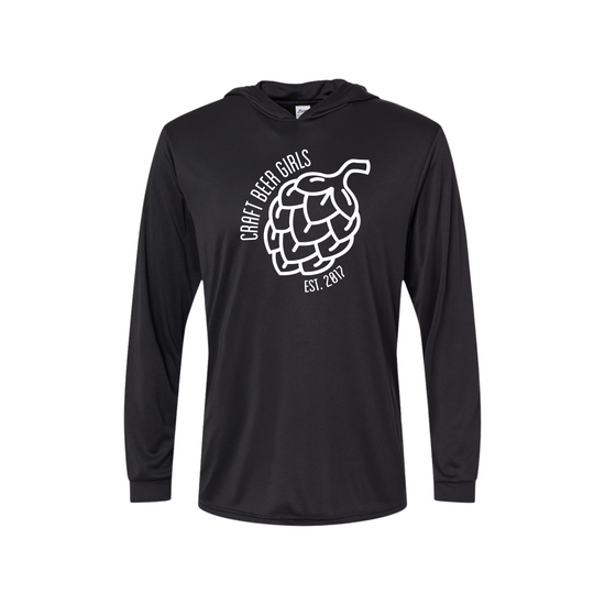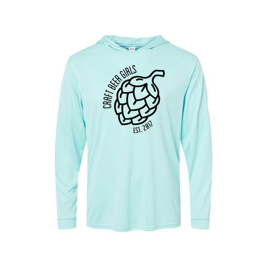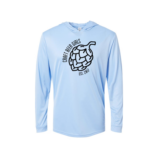 Whether you're beach-bound, brewery-hopping, or pouring under the sun, the Craft Beer Girls Performance Hoodie is your lightweight summer layer for it all. Featuring our classic CBG logo on a microfiber performance hoodie, this piece blends sun protection with breathability—designed for those who want to stay cool and covered.