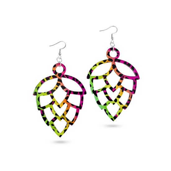 Unleash your inner wildcat with our Hop Earrings featuring a Neon Rainbow Leopard print. These striking earrings blend a daring leopard print with a stunning spectrum of neon rainbow hues, making a bold fashion statement that is sure to turn heads wherever you go.