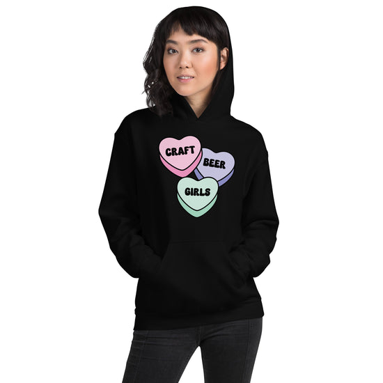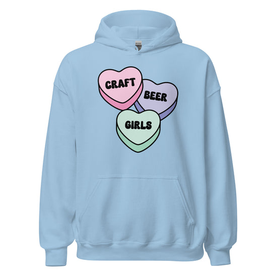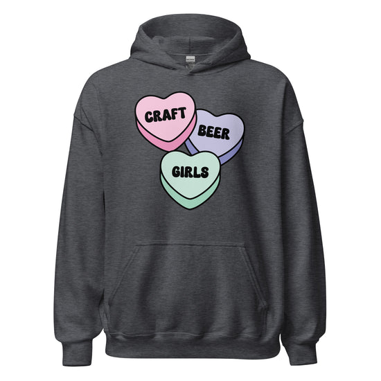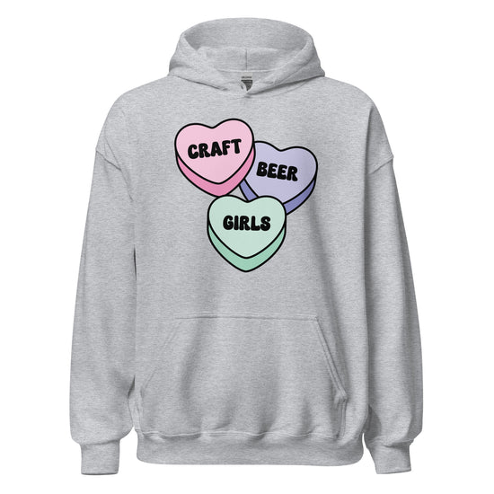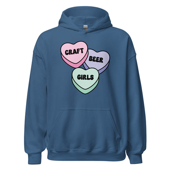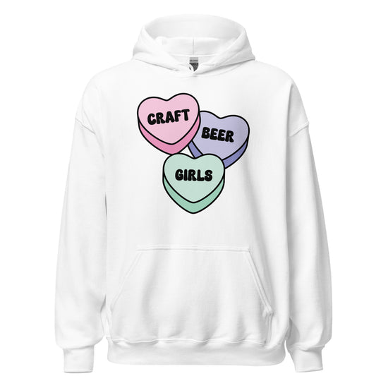 Introducing the "Craft Beer Girls" apparel line, a charming and spirited collection that encapsulates the enthusiasm of women who celebrate the craft beer culture. Our signature design features a trio of candy-heart graphics with the words "Craft," "Beer," and "Girls" emblazoned across them, symbolizing a sweet toast to the diversity and unity within the craft beer community.
