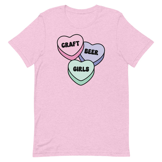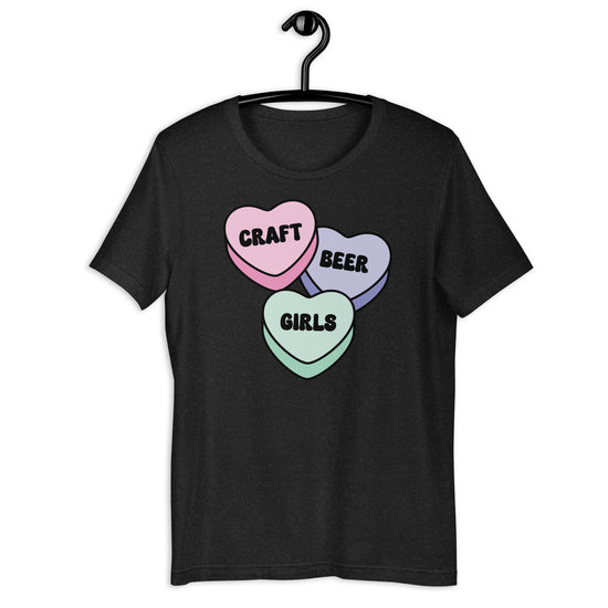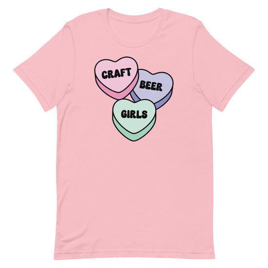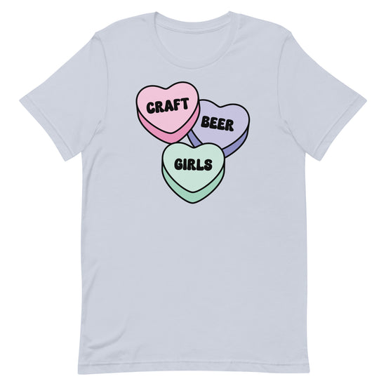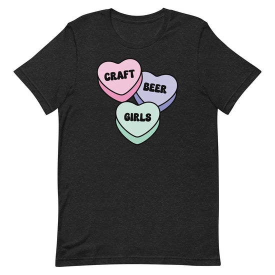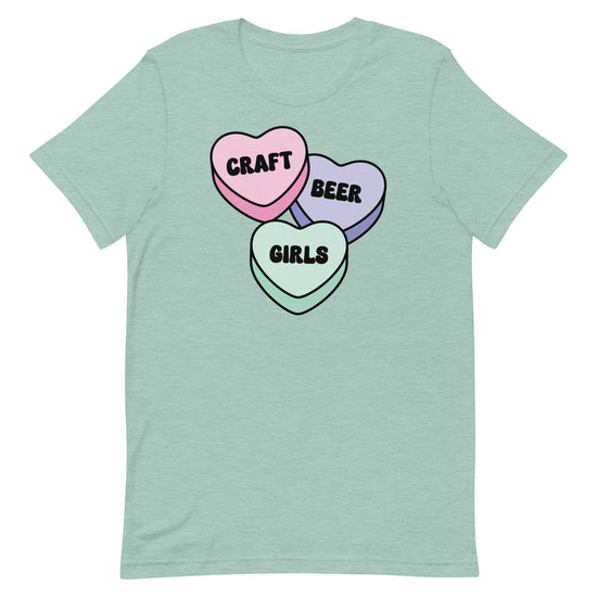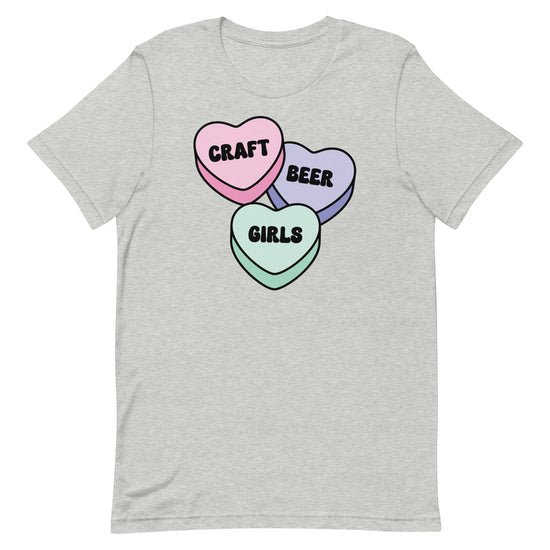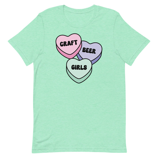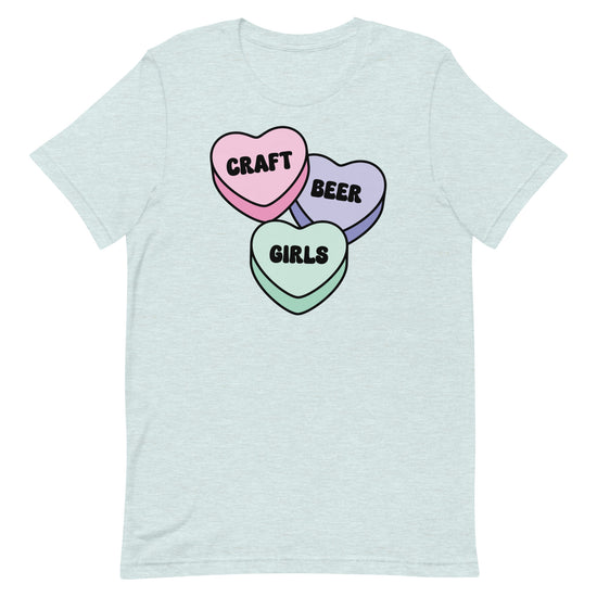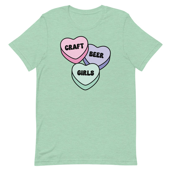 Introducing the "Craft Beer Girls" apparel line, a charming and spirited collection that encapsulates the enthusiasm of women who celebrate the craft beer culture. Our signature design features a trio of candy-heart graphics with the words "Craft," "Beer," and "Girls" emblazoned across them, symbolizing a sweet toast to the diversity and unity within the craft beer community.