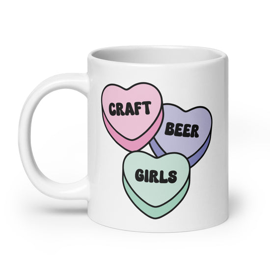 Introducing the "Craft Beer Girls" apparel line, a charming and spirited collection that encapsulates the enthusiasm of women who celebrate the craft beer culture. Our signature design features a trio of candy-heart graphics with the words "Craft," "Beer," and "Girls" emblazoned across them, symbolizing a sweet toast to the diversity and unity within the craft beer community.