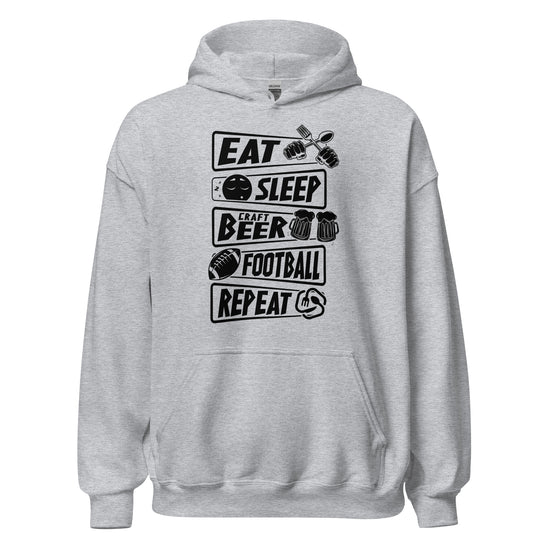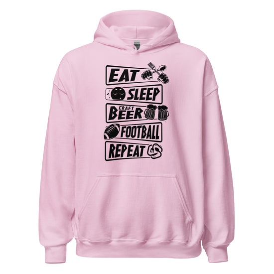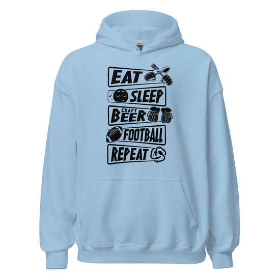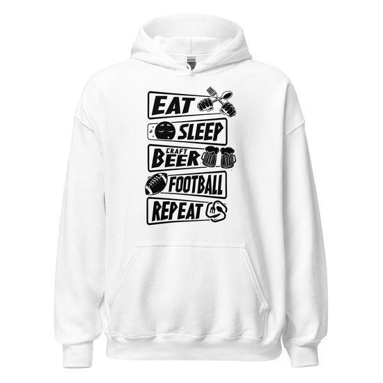 Eat, Sleep, Craft Beer, Football, Repeat - Black Ink - Unisex Hoodie