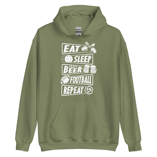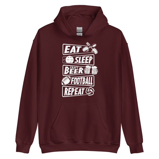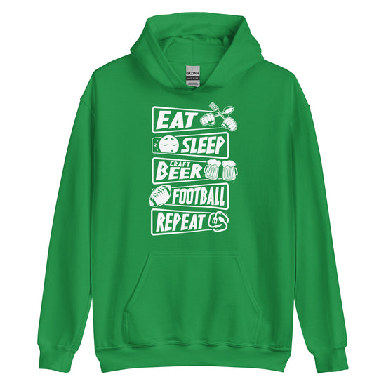 Eat, Sleep, Craft Beer, Football, Repeat - White Ink - Unisex Hoodie