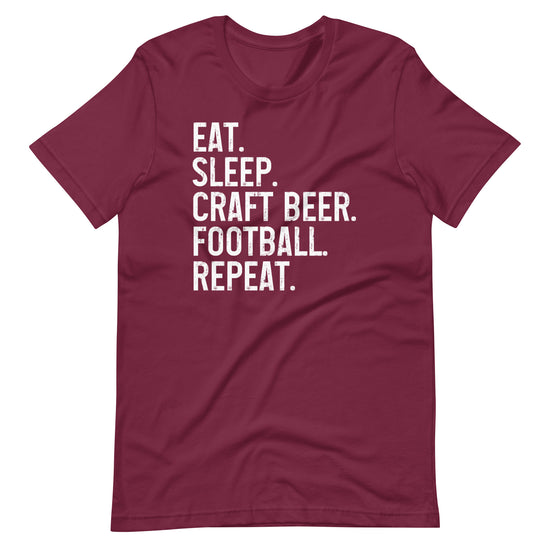 Eat, Sleep, Craft Beer, Football, Repeat - White Ink - Unisex T-Shirt