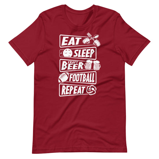 Eat, Sleep, Craft Beer, Football, Repeat - White Ink - Unisex t-shirt