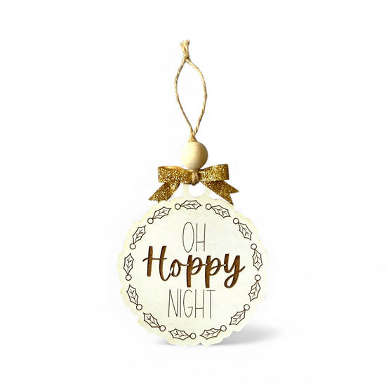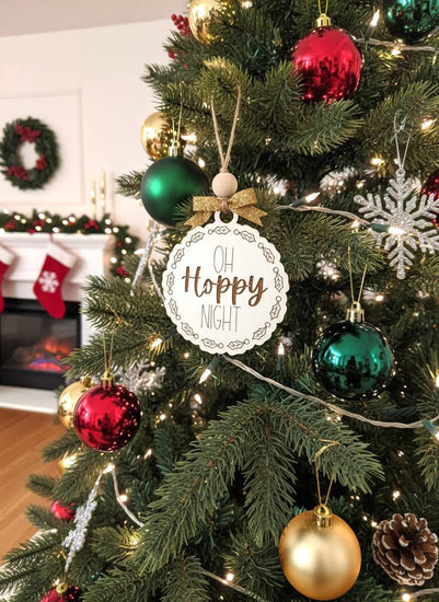 For the beer lover who loves a holiday pun, this “Oh Hoppy Night” ornament is a must-have — simple, sparkly, and full of cheer.
