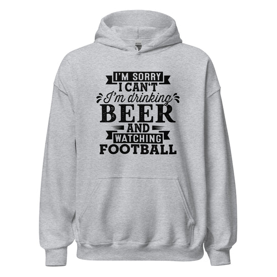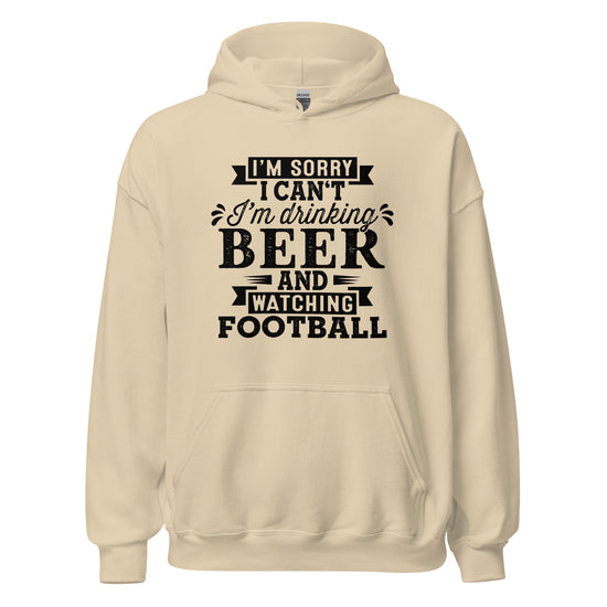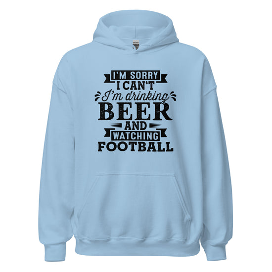 Sorry, I Can't - I'm Drinking Beer and Watching Football - Black Ink - Unisex Hoodie
