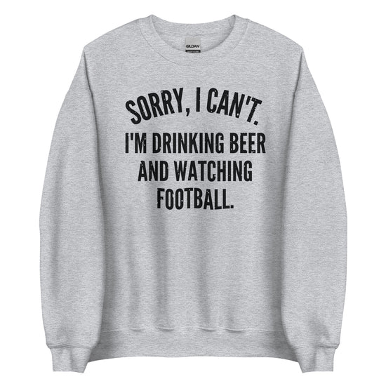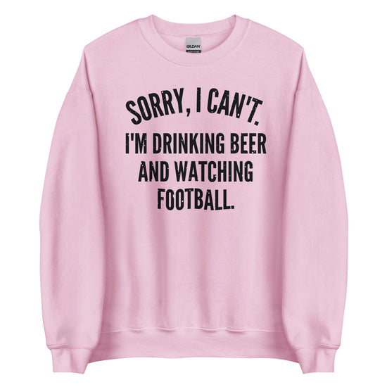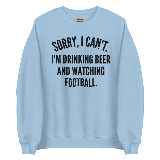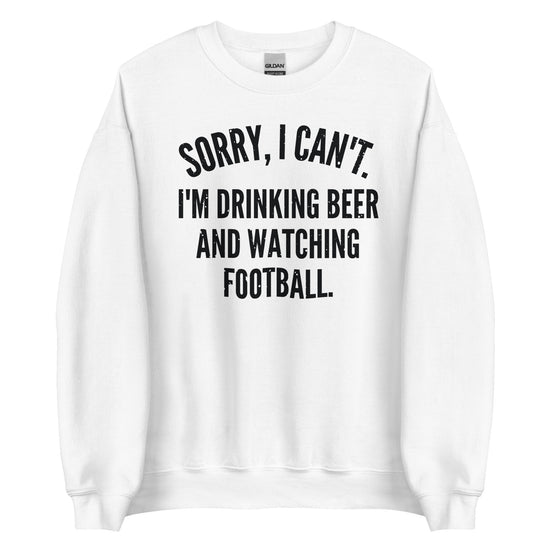 Sorry I Can't - I'm Drinking Beer and Watching Football - Black Ink - Unisex Sweatshirt