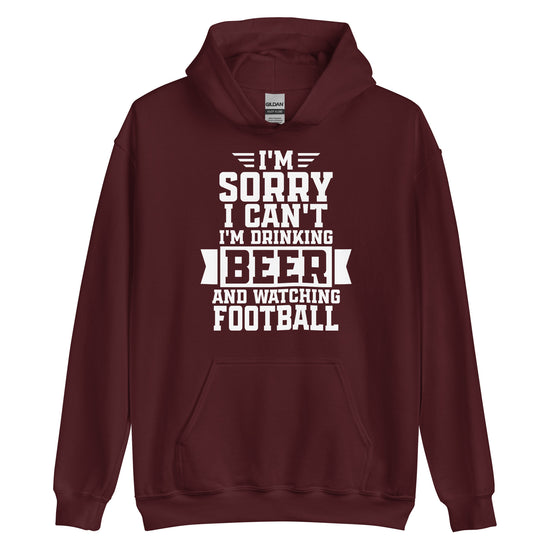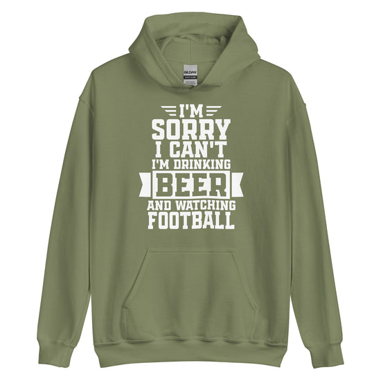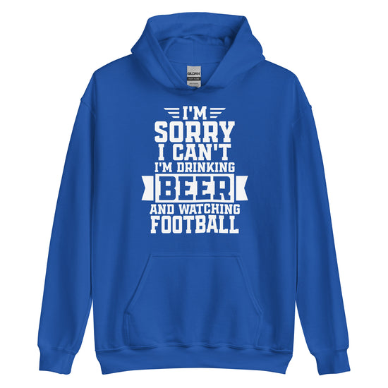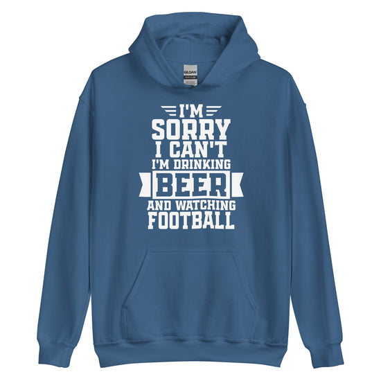 Sorry, I Can't - I'm Drinking Beer and Watching Football - White Ink - Unisex Hoodie