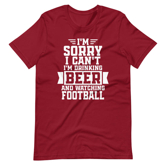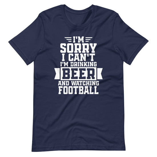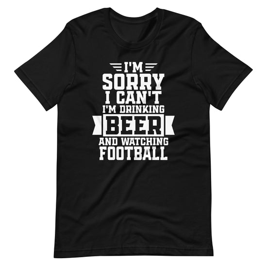 Sorry, I Can't - I'm Drinking Beer and Watching Football - White Ink - Unisex T-Shirt